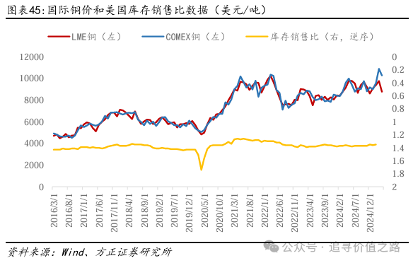 美国的关税政策可能推高通货膨胀率。美国对钢铁等工业原料的关税无疑会通过企业生产成本传导到终端消费品。而美国对中国廉价消费品的关税,无疑会直接推高美国消费品的价格。而从预期通胀和工业景气度的变量“铜博士”来看,LME和COMEX铜价在近期都出现了上涨,价格处于高位。铜价格的抬升可能并非来自于美国改善的工业生产情况,很可能来源于预期通货膨胀,可见美国的库存销售比并未得到显著的改善。此外,由于特朗普对铜进口的调查,全球铜从欧洲大量流向美国,并形成了LME铜价和COMEX铜价的显著价差。