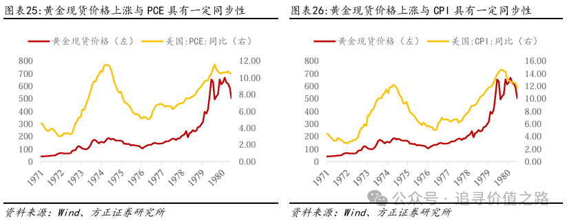 由于COMEX黄金期货的交易时间不能完全覆盖这个时间段,因此我们采用伦敦黄金现货价格的变动进行分析。从数据来看,无论是美国PCE数据还是美国CPI数据,都反映了当时美国较高的通胀率水平,通胀率和黄金价格的走势较为一致,可以看出通胀率对黄金价格的推动效应较为显著。